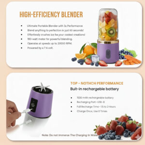 Portable Mixer Juicer 1200 mAh with 2 Jars | (40W)