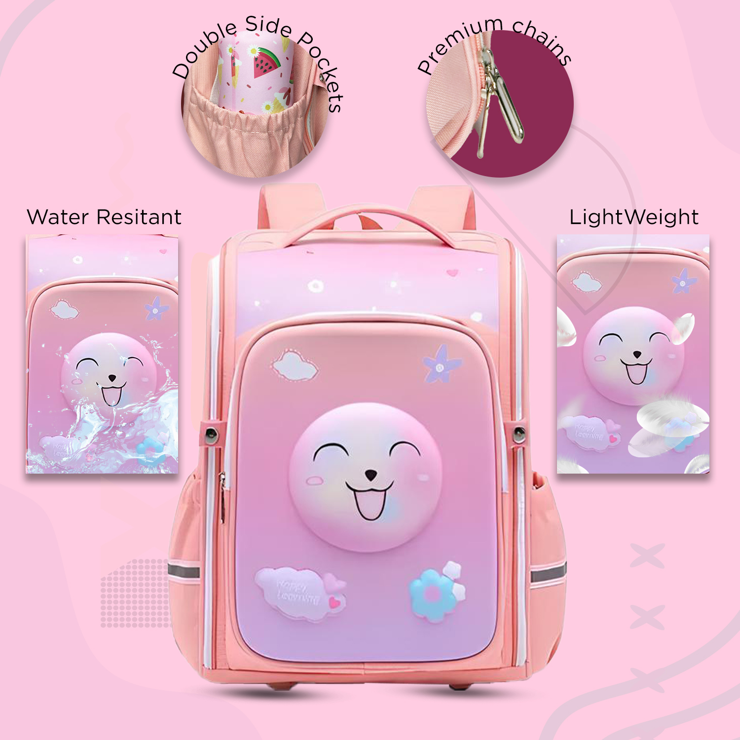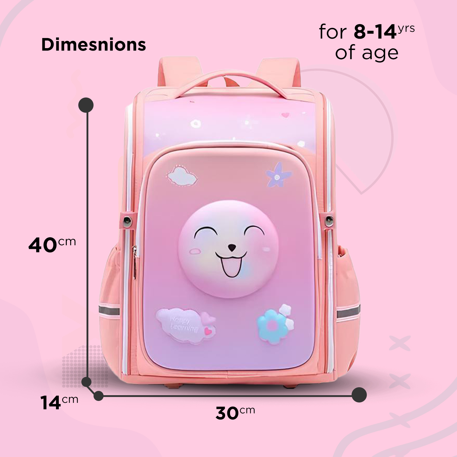 SAGEWARE 3D School Bag for Boys Kids & Girls Backpack for School | Waterproof, Lightweight, Spacious with Multiple Pockets & Durable Zippers for Daily Use (Age of 8-14 years) 3D-Peach