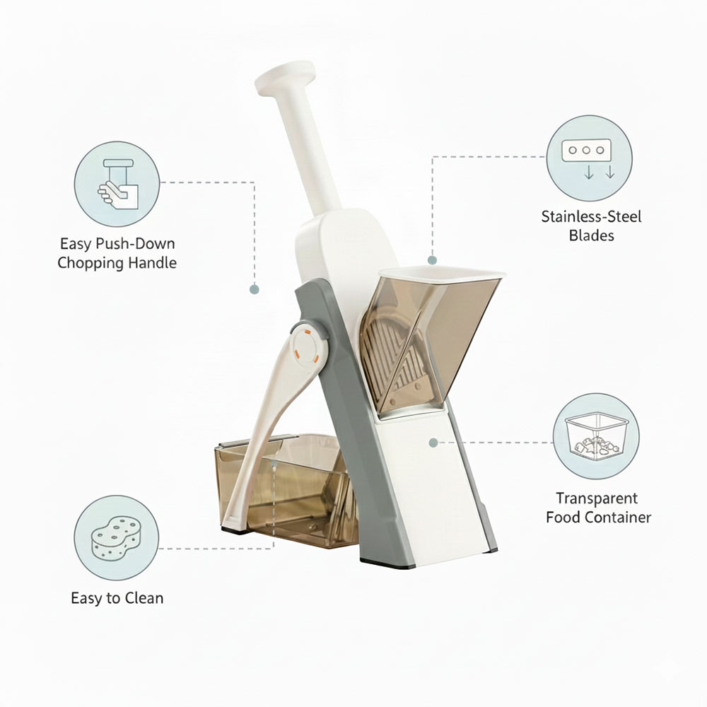The Push Hand Chopper is designed to make everyday cooking quicker and easier. Its smooth push-down mechanism allows you to chop vegetables and fruits in just a few seconds—perfect for onions, tomatoes, garlic, chilies, nuts, and more. No electricity is required, making it ideal for home kitchens, hostels, and even while traveling. The chopper features a strong and transparent bowl, allowing you to easily check the chopping level—whether you need coarse, medium, or fine pieces. The soft-press top gives a comfortable chopping experience, and the non-slip base keeps the chopper steady while in use. Made with food-safe, BPA-free materials, it ensures safety and hygiene with every use. It is also easy to clean, simple to assemble, and compact enough to store in any kitchen drawer. Perfect for quick meal prep, salads, sabzi, chutneys, and everyday cooking tasks.