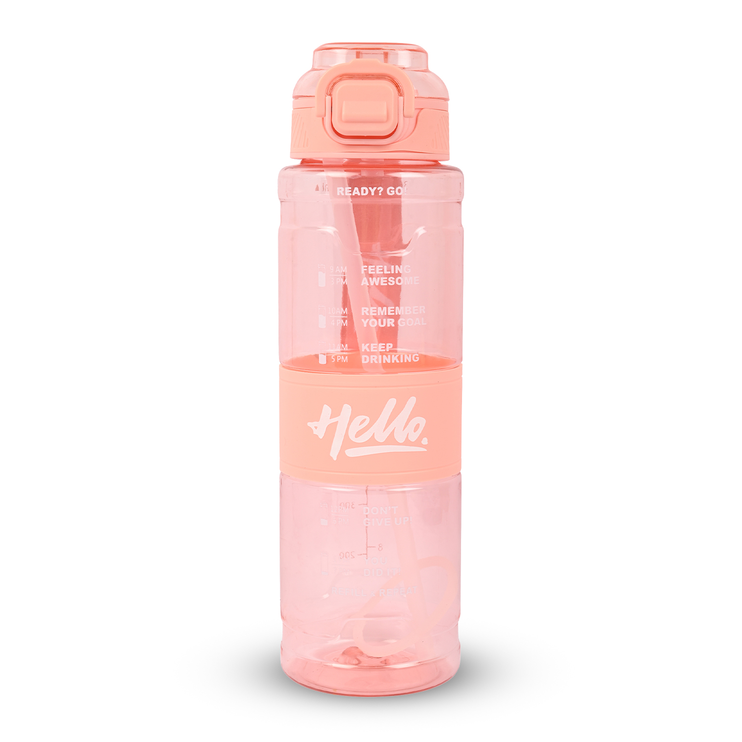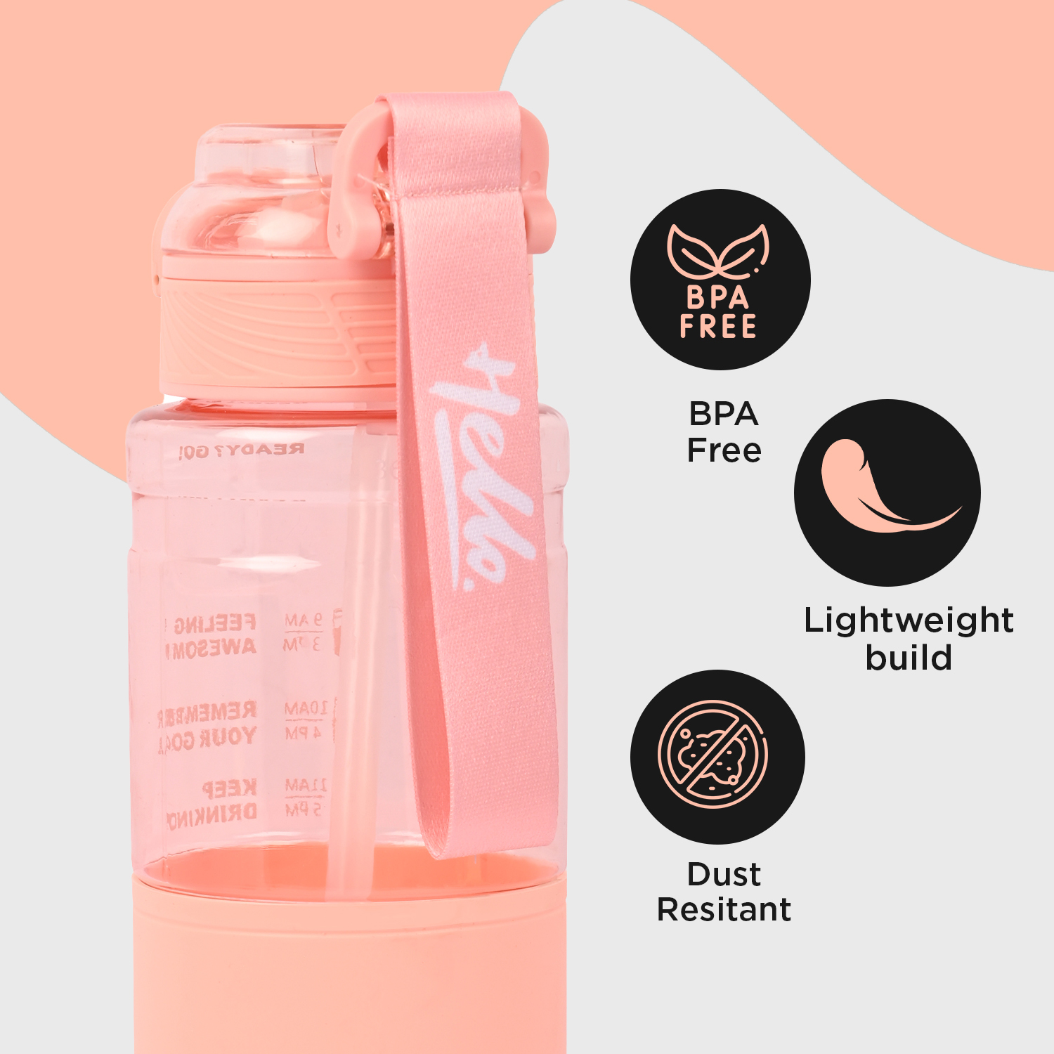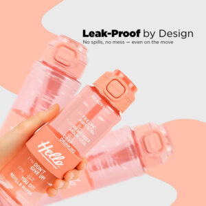 Sageware Hello Quote Printed Multi-Purpose Water Bottle – 1L Leakproof & Durable Daily Use (Peach)Sageware Hello Quote Printed Multi-Purpose Water Bottle – 1L Leakproof & Durable Daily Use (Peach)