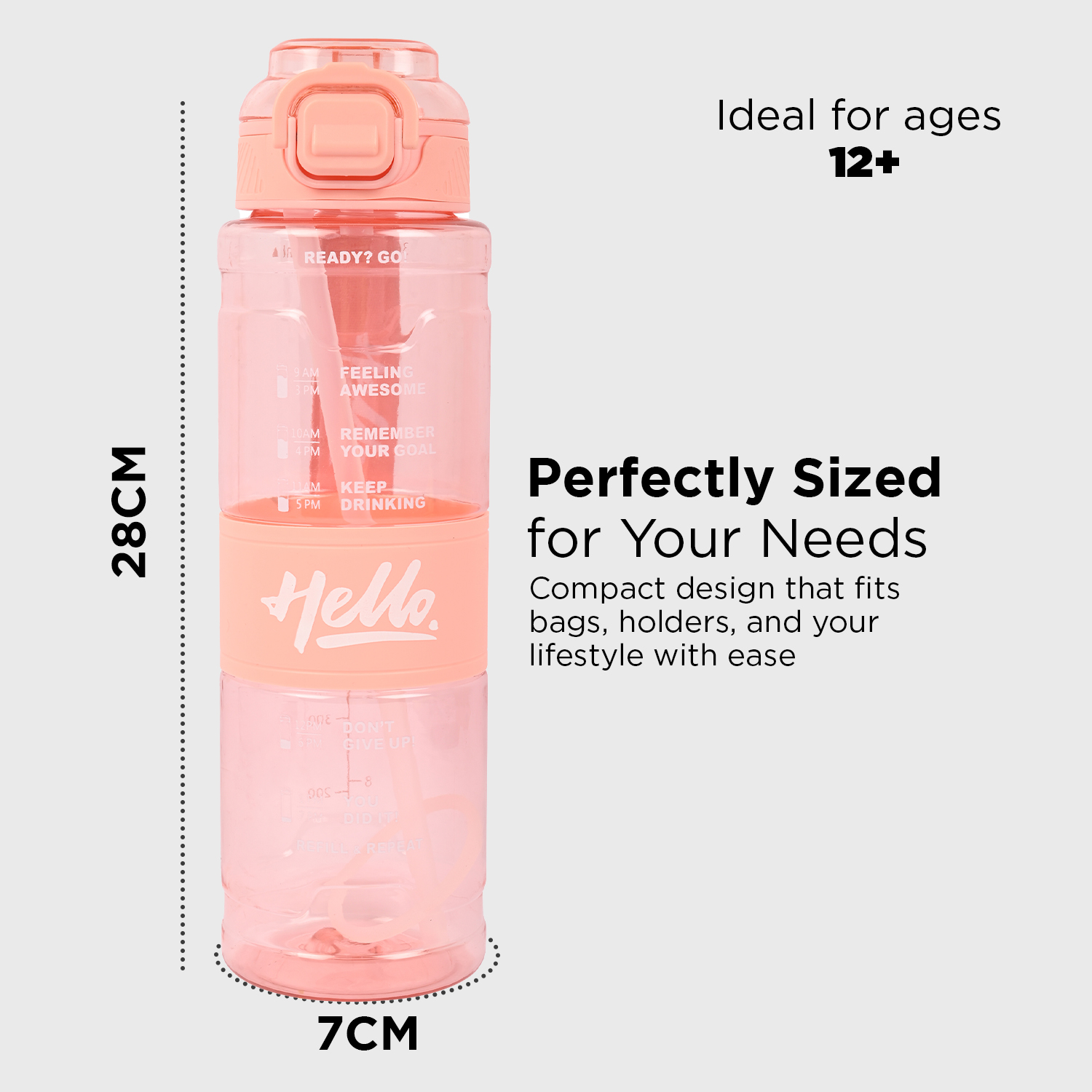 💧 Motivational Time Marker: Stay on track with daily hydration goals using printed time reminders for morning to evening.