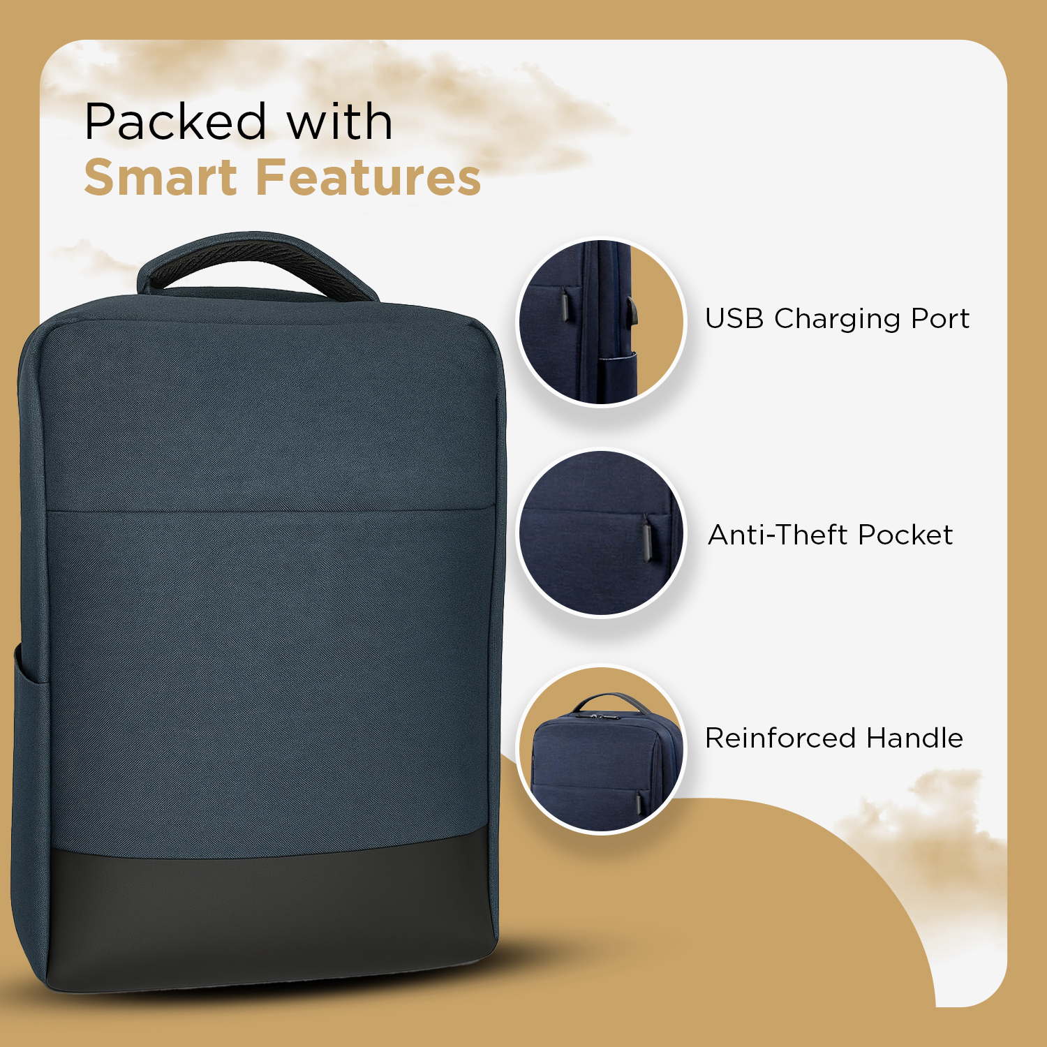 Smart Storage: Multiple compartments including a spacious main pocket, front organizer, and hidden anti-theft pocket for valuables.