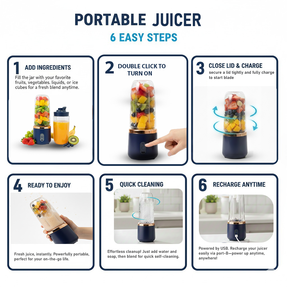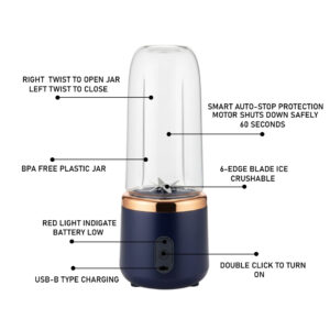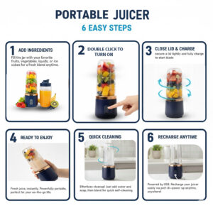 This portable blender works as a fruit mixer jar, juice blender, juicer jar, mini juicer, and small mixer jar for daily use. Its strong motor and stainless-steel blades make smoothies, banana shakes, and fresh juice quickly. The rechargeable juicer mixer electric design lets you use it anywhere. Comes with a handy juicer bottle for travel, making it a perfect mini grinder and portable blender for home, office, and gym.