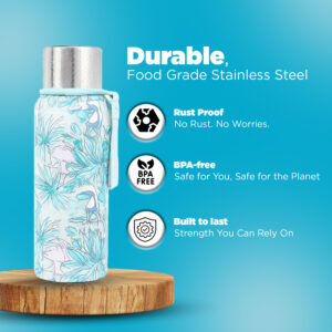 SAGEWARE:- Stay hydrated throughout the day with this premium stainless steel vacuum insulated flask, designed to keep your beverages hot or cold for long hours. Made from high-quality stainless steel, it features double wall insulation that maintains temperature while preventing outer condensation. The leak-proof lid ensures spill-free usage, making it ideal for office, school, college, gym, travel, and outdoor activities. Its slim and lightweight design fits easily into bags and bottle holders, offering convenient portability. The rust-resistant, BPA-free construction makes it safe for daily use, while the wide mouth allows easy filling and cleaning. Suitable for water, tea, coffee, and other beverages, this reusable flask is an eco-friendly choice for everyday hydration.